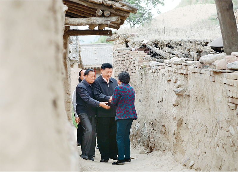 2017年6月21日至23日,中共中央總書記、國家主席、中央軍委主席習近平在山西考察。這是6月21日下午,習近平在忻州市岢嵐縣趙家洼村看望特困戶王三女一家。