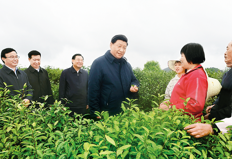 2020年4月20日至23日,中共中央總書記、國家主席、中央軍委主席習近平在陜西考察。這是4月21日,習近平在安康市平利縣老縣鎮(zhèn)蔣家坪村女媧鳳凰茶業(yè)現(xiàn)代示范園區(qū),同茶農(nóng)們親切交談。